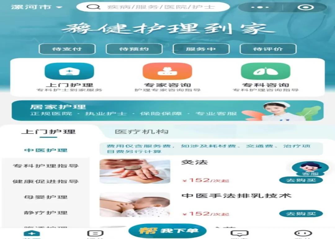 在醫(yī)院公眾號(hào)內(nèi)輕松一點(diǎn),即可進(jìn)入預(yù)約界面。選擇您需要的服務(wù)項(xiàng)目,填寫相關(guān)信息,剩下的就交給我們!專業(yè)的護(hù)士將根據(jù)您的需求和時(shí)間安排,準(zhǔn)時(shí)上門提供服務(wù)。整個(gè)過(guò)程簡(jiǎn)單快捷,讓您無(wú)需再為排隊(duì)掛號(hào)、路途奔波而煩惱。
