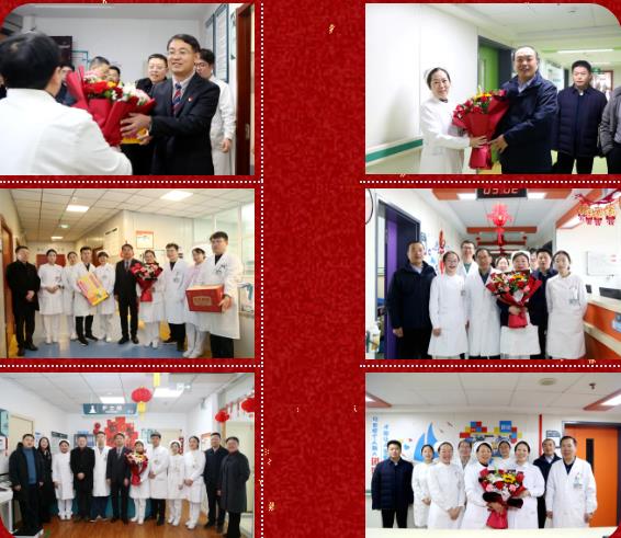 1月29日正值乙巳蛇年大年初一,漯河醫(yī)專二附院(漯河市骨科醫(yī)院、漯河市立醫(yī)院)黨委書記柴運(yùn)洪、院長王齊超及院領(lǐng)導(dǎo)吳廣良、曹鵬克、鄭建新、劉國鋒、吳威等分別帶領(lǐng)各職能科室負(fù)責(zé)人深入各病區(qū)、各科室、陰陽趙分院等處看望慰問節(jié)日期間依然堅(jiān)守崗位的廣大干部職工,為每一位堅(jiān)守崗位的醫(yī)護(hù)人員和工作人員送上新春的美好祝福與誠摯的慰問。