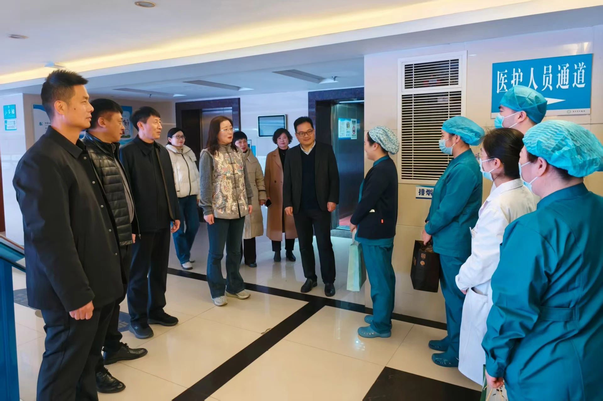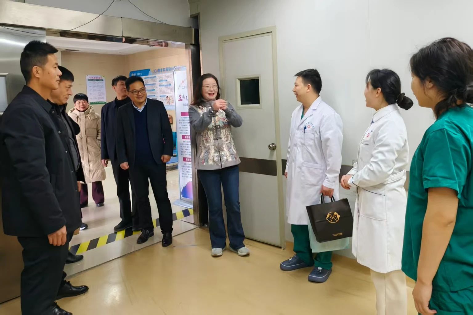 “新年好,大家辛苦了!”“給大家拜年了!”院領(lǐng)導(dǎo)一行先后到臨床病區(qū)、門急診、重癥監(jiān)護(hù)室、醫(yī)技檢驗(yàn)、治未病·健康管理中心、針灸科、康復(fù)科等地慰問。為大家送去暖暖的新春祝福,與值班人員親切交談,肯定、感謝大家過去一年對醫(yī)院發(fā)展作出的貢獻(xiàn)與辛勤付出,對大家堅(jiān)守在崗、無私奉獻(xiàn)的精神表示崇高的敬意,并叮囑大家工作務(wù)必認(rèn)真、負(fù)責(zé),確保春節(jié)期間患者得到專業(yè)、舒心的就診服務(wù)。院領(lǐng)導(dǎo)們還深入病房,為在院診治患者送上新春的問候和祝福,關(guān)心他們的身體情況,祝愿他們新年快樂,身體早日康復(fù)!