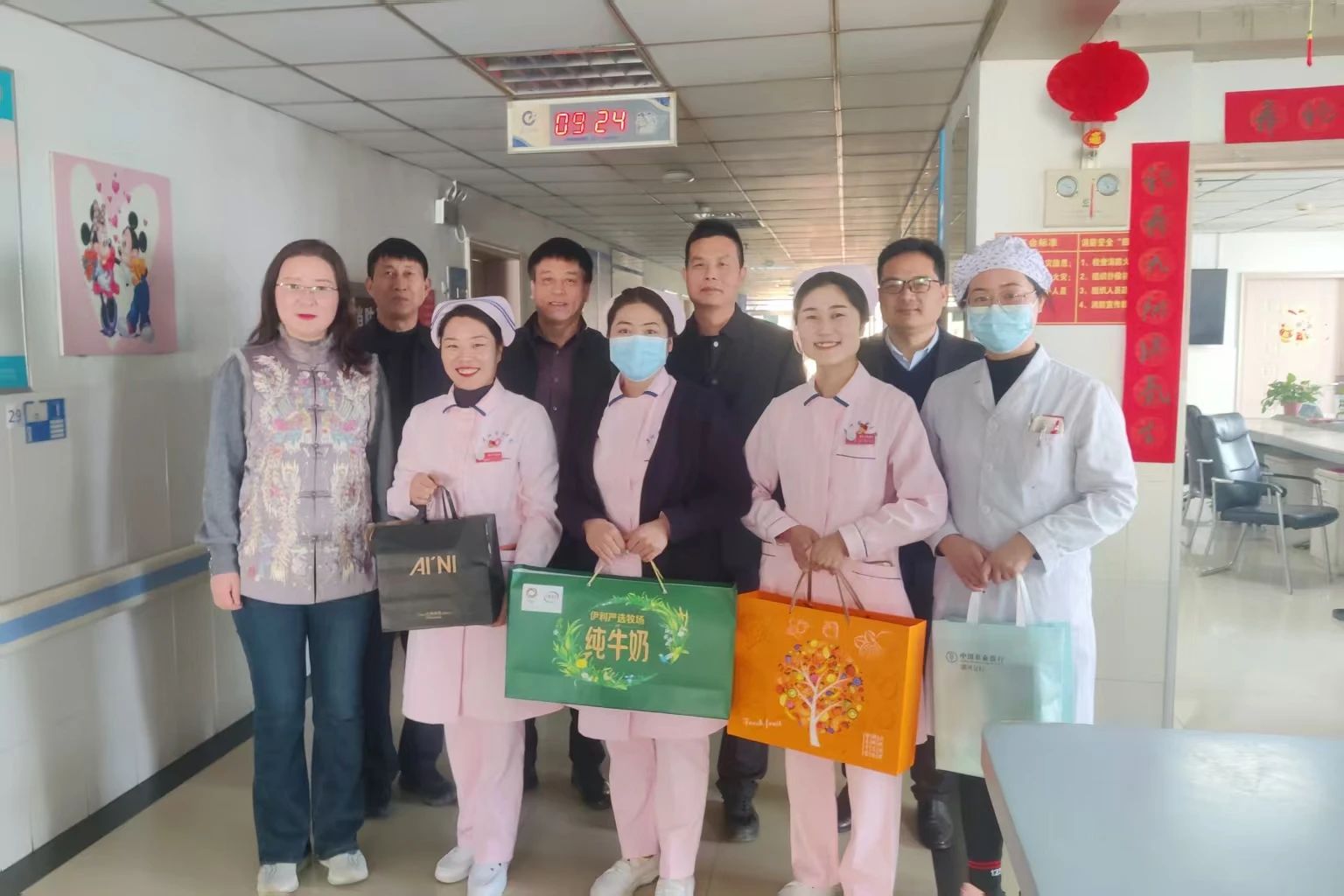 靈蛇獻(xiàn)瑞,歲啟新程。1月29日(大年初一)一大早,在濃濃的節(jié)日氛圍中,漯河市中醫(yī)院黨委書記、院長楊軼帶領(lǐng)院班子成員及相關(guān)科室負(fù)責(zé)人到臨床一線慰問春節(jié)堅(jiān)守在崗的醫(yī)務(wù)人員,為他們送上牛奶、水果等慰問品,向他們致以新春的問候和美好的祝福。