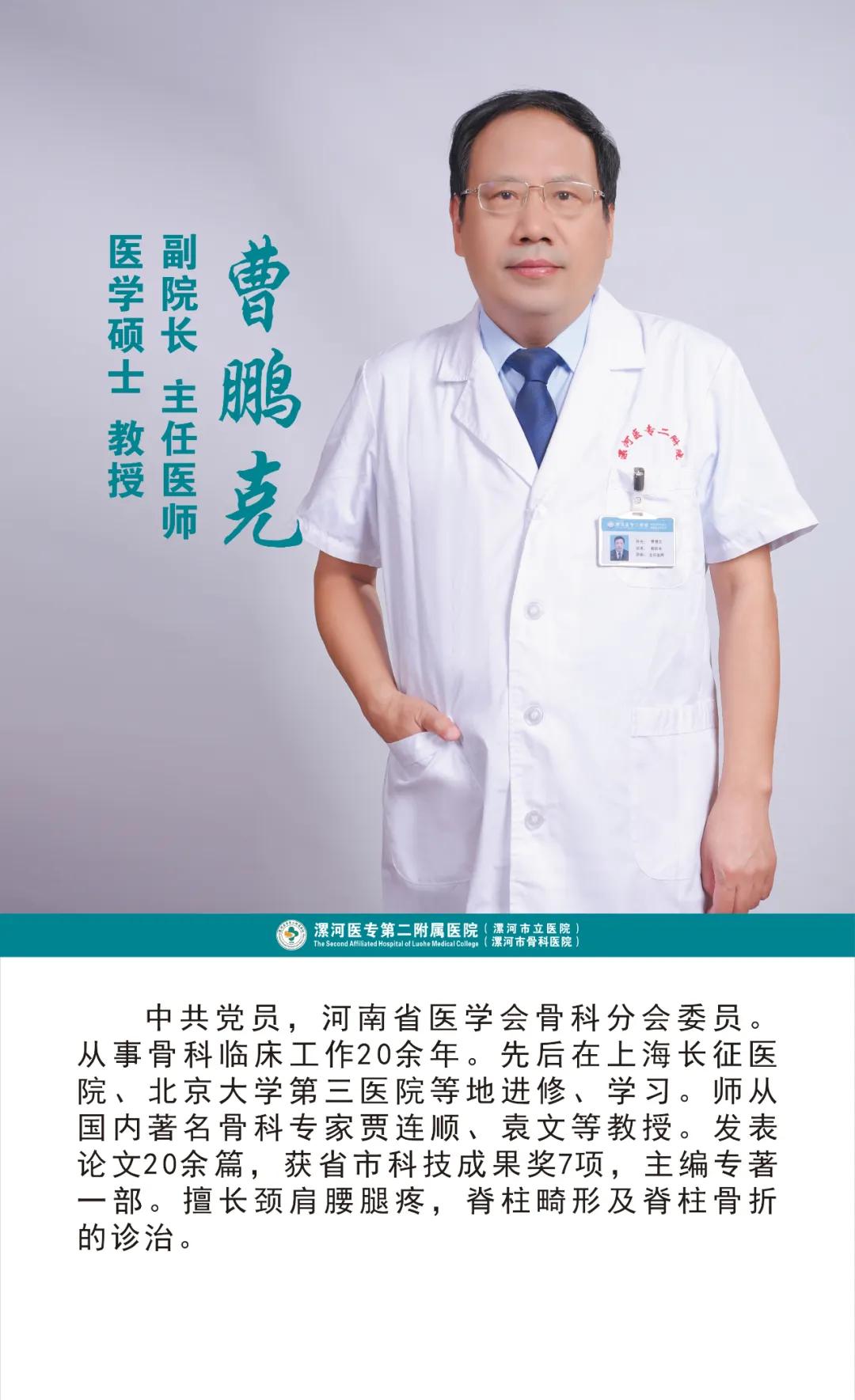骨醫(yī)名家 | 漯河醫(yī)專二附院(漯河市骨科醫(yī)院)副院長、骨科專家——曹鵬克