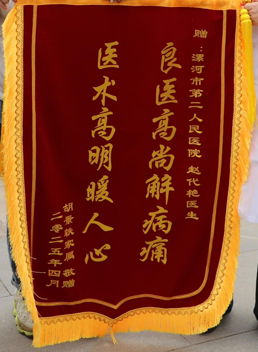 一名家住駐馬店市西平縣的患兒家長帶著孩子專程來到活動現(xiàn)場,找到市二院小兒心血管神經(jīng)血液科主任醫(yī)師趙代艷,送上一面寫有“良醫(yī)高尚解病痛 醫(yī)術(shù)高明暖人心”的錦旗,以表達(dá)全家的感激之情。“近兩個月,每周我都帶孩子前往市二院復(fù)查,趙代艷醫(yī)生細(xì)致入微的關(guān)懷與耐心,都令我深深感動。每一次復(fù)查,她都不厭其煩地叮囑各項注意事項,從日常飲食到生活作息,面面俱到。”孩子家長感慨地說道。