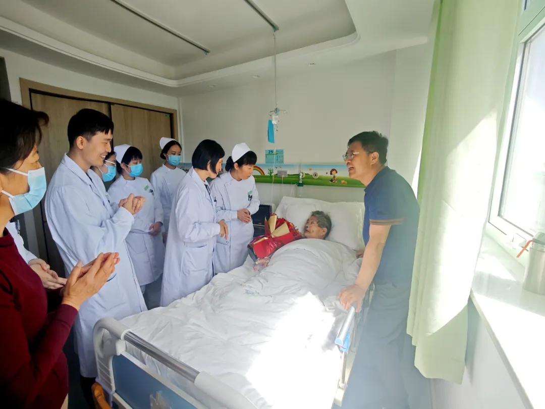 在市二院醫(yī)療救治的第一線,不僅有嚴謹專業(yè)的診療,更有溫暖真摯的關懷。4月13日上午,市二院呼吸與內(nèi)分泌科病房里傳來陣陣歡聲笑語,科室醫(yī)護人員為90歲的秦阿姨精心準備了一場生日會,用愛與陪伴為老人送上最特別的祝福。