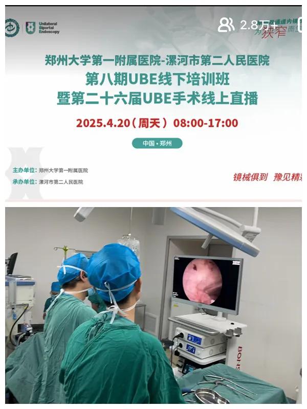 4月20日,鄭大一附院與市二院骨科團隊精心組織了第二十六屆UBE手術(shù)線上直播活動。據(jù)黃宗強教授介紹,本次直播演示的兩臺手術(shù)分別是:雙通道鏡下腰4/5椎管擴大減壓術(shù)、雙通道鏡下腰4/5髓核摘除術(shù),手術(shù)操作與講解同時進行。此次直播不僅是一次技術(shù)的展示,更是一次知識的傳遞與經(jīng)驗的分享。參會的醫(yī)生們通過直播,能夠直觀地看到UBE手術(shù)在實際操作中的效果,從而更好地理解這一技術(shù)的優(yōu)勢和應(yīng)用價值。