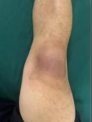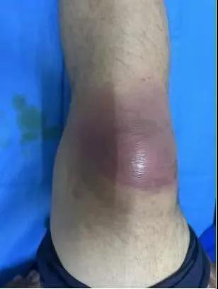 患者,以“外傷致右膝紅腫、疼痛20余天”為主訴就診,20余天前,因騎電車摔傷右膝關(guān)節(jié),致使出現(xiàn)右膝腫脹、疼痛、活動受限,在當?shù)蒯t(yī)院給予消腫、止痛治療效果差,繼而出現(xiàn)膝關(guān)節(jié)紅腫熱痛癥狀,門診給予滑膜炎片及消腫止痛藥物治療癥狀未見好轉(zhuǎn),慕名前來我院手顯微外科住院。入院當天即給予中藥外敷(骨炎膏),穿刺膿性分泌物送細菌培養(yǎng),給予廣譜抗生素治療(細菌培養(yǎng)未出)。