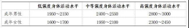 表 1 中國(guó)居民成人膳食能量需要量(單位:kcal/d)