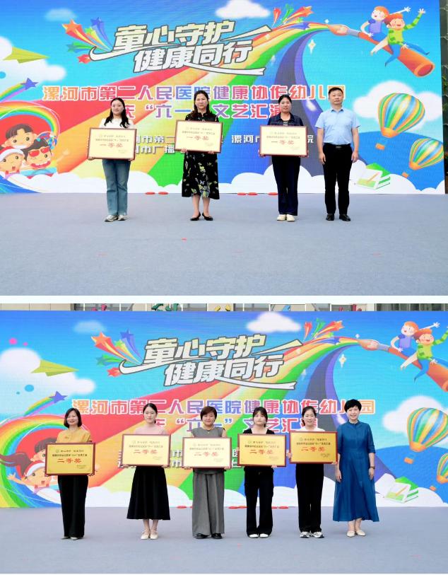 評委們現(xiàn)場評選出一、二等獎及優(yōu)秀獎。市二院黨委書記魏松,市廣播電視臺副臺長寧雅秋,市二院黨委副書記、院長胡海英,分別為獲獎幼兒園頒獎。