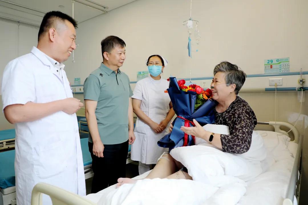 5月30日上午,市二院黨委書(shū)記魏松、副院長(zhǎng)劉橋?qū)3虂?lái)到病房,看望慰問(wèn)這位康復(fù)中的香港同胞,送上代表健康祝愿的鮮花,關(guān)切詢問(wèn)其身體恢復(fù)情況,并送上端午安康的祝福。“沒(méi)想到在異鄉(xiāng)生病,還能在節(jié)日收到這么溫暖的關(guān)懷,真的太感謝大家了!是二院優(yōu)秀的醫(yī)護(hù)團(tuán)隊(duì)救了我的命,我們?nèi)叶几屑げ槐M!感謝二院!感謝漯河!”翁阿姨激動(dòng)地表示,醫(yī)院高效的救治與貼心的服務(wù),讓他感受到了重生的喜悅和家一般的溫暖。