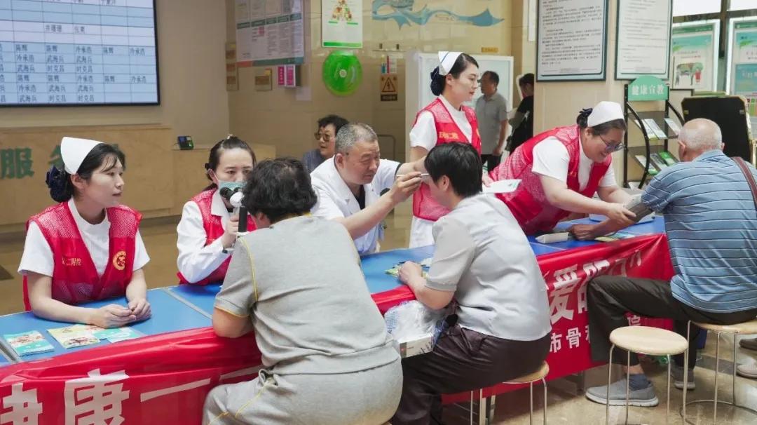 6月6日愛眼日當(dāng)天,在漯河醫(yī)專二附院門診一樓,楊志強(qiáng)主任帶領(lǐng)團(tuán)隊(duì)開展義診活動?,F(xiàn)場人頭攢動:王軍敬醫(yī)生為絡(luò)繹不絕的市民進(jìn)行專業(yè)眼科檢查;尹姿文護(hù)士長帶領(lǐng)志愿者團(tuán)隊(duì)發(fā)放科普資料,講解科學(xué)用眼知識。免費(fèi)咨詢、初步篩查、健康宣教一站式服務(wù),讓優(yōu)質(zhì)眼健康資源直達(dá)群眾身邊,贏得廣泛贊譽(yù)。