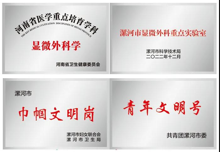 1993年,市二院在外科病區(qū)設(shè)立顯微手足外科專業(yè)組。2003年5月顯微手足外科獨立成科,是最早成立的專業(yè)科室。期間科室不斷發(fā)展壯大,業(yè)務(wù)技術(shù)顯著提升,2006年該科被確定為“河南省醫(yī)學(xué)臨床特色???rdquo;,2011年該科被確定為“河南省醫(yī)學(xué)重點培育學(xué)科”,牽頭成立了漯河市醫(yī)學(xué)會顯微手外科分會,并一直擔(dān)任歷屆主任委員。同時,院內(nèi)設(shè)有“漯河市顯微外科重點實驗室”,在科研和臨床工作中發(fā)揮重要作用。