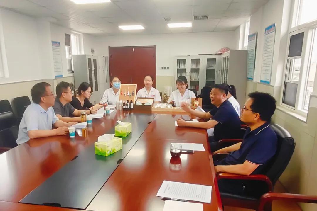 為深入挖掘中醫(yī)藥產(chǎn)業(yè)發(fā)展?jié)摿?,助推漯河中醫(yī)藥事業(yè)高質(zhì)量發(fā)展,6月20日上午,漯河市科學(xué)技術(shù)局黨組書記、局長效國強帶領(lǐng)中原食品實驗室行政副主任、實驗室服務(wù)中心主任高鵬,中原食品實驗室綜合行政部部長,實驗室服務(wù)中心綜合辦公室副主任張艷一行三人來院調(diào)研。漯河市中醫(yī)院紀(jì)委書記劉家棟,藥學(xué)部主任陳朝鋒以及中藥衍生品研發(fā)團(tuán)隊和相關(guān)醫(yī)療專家等人員參加會議。