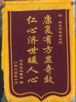 與此同時(shí),科室還收到一面印有“康復(fù)有方顯奇效,仁心濟(jì)世暖人心”字樣的錦旗。在患病期間,患者飽受腰痛、下肢麻木等癥狀折磨,嚴(yán)重影響日常生活。來到康復(fù)科后,科室負(fù)責(zé)人張靜帶領(lǐng)科室團(tuán)隊(duì)根據(jù)其病情制定個(gè)性化針灸治療方案,通過精準(zhǔn)取穴、規(guī)范施針,配合專業(yè)康復(fù)指導(dǎo),逐步減輕患者病痛,助其恢復(fù)正常生活。患者為表感激,特贈(zèng)錦旗,錦旗上的話語是對(duì)科室治療效果的高度認(rèn)可。