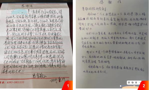 另一封感謝信來自因腰疼住院的患者,信中感謝了護(hù)士長(zhǎng)田智慧和護(hù)士曹玲。治療期間,兩位護(hù)理人員將專業(yè)、細(xì)致的服務(wù)貫穿始終。從日??祻?fù)護(hù)理操作到患者心理疏導(dǎo),她們始終保持高度的責(zé)任心,耐心解答疑問、貼心安撫情緒,用暖心服務(wù)助力患者身心康復(fù),贏得患者由衷的信賴與感激。