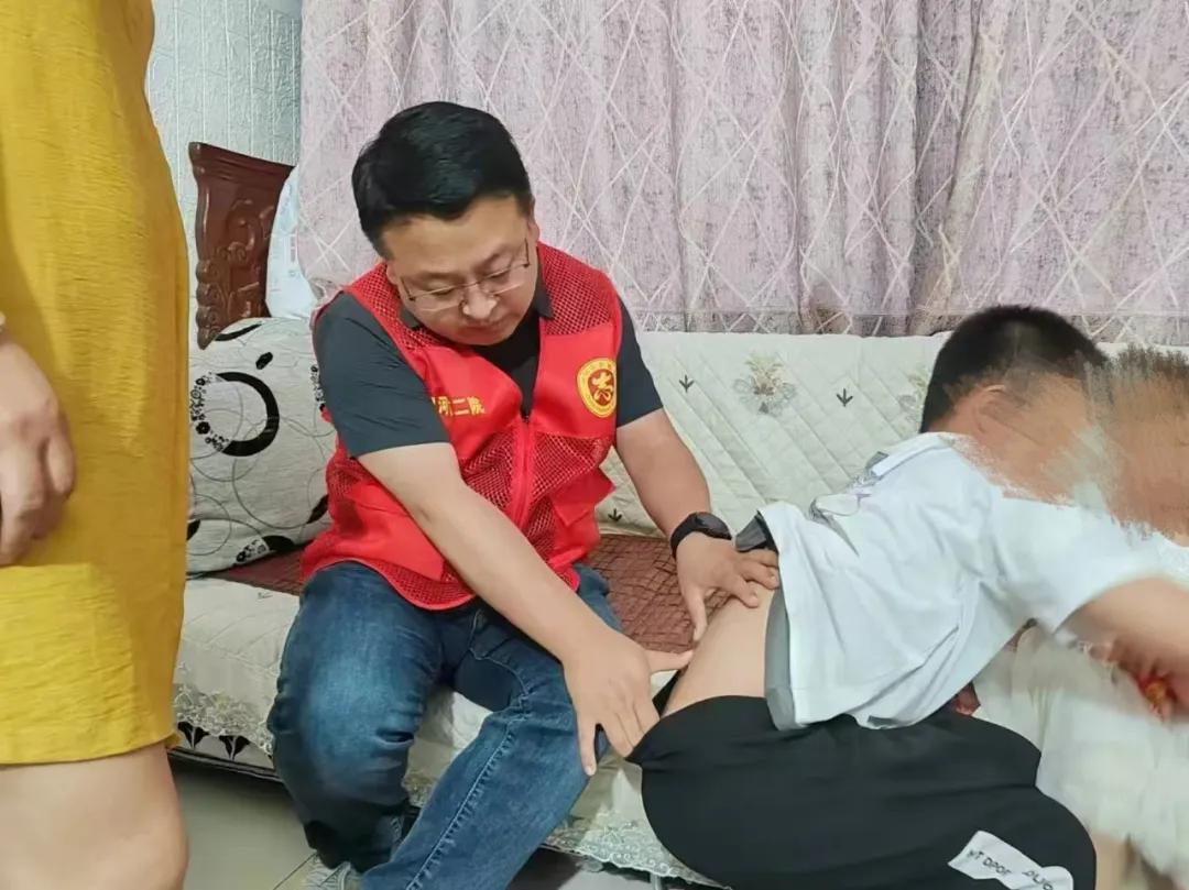 近日,市二院放療科團(tuán)隊(duì)再次來到小匯攏家中回訪。醫(yī)務(wù)人員仔細(xì)檢查了他的身體恢復(fù)情況,并叮囑日常注意事項(xiàng)。看著孩子活蹦亂跳的樣子,誰也想不到,這個(gè)陽光少年曾因腫瘤壓迫脊髓而瀕臨絕境。