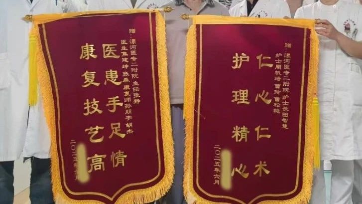 出院之際,患者特意送來兩面錦旗:一面寫給護理團隊,致謝“仁心仁術(shù),護理精心”;一面獻給醫(yī)生與治療師,感恩“醫(yī)患手足情,康復(fù)技藝高” 。這一面面的錦旗,是認(rèn)可,更是康復(fù)醫(yī)學(xué)科“以患者為中心”的生動寫照。