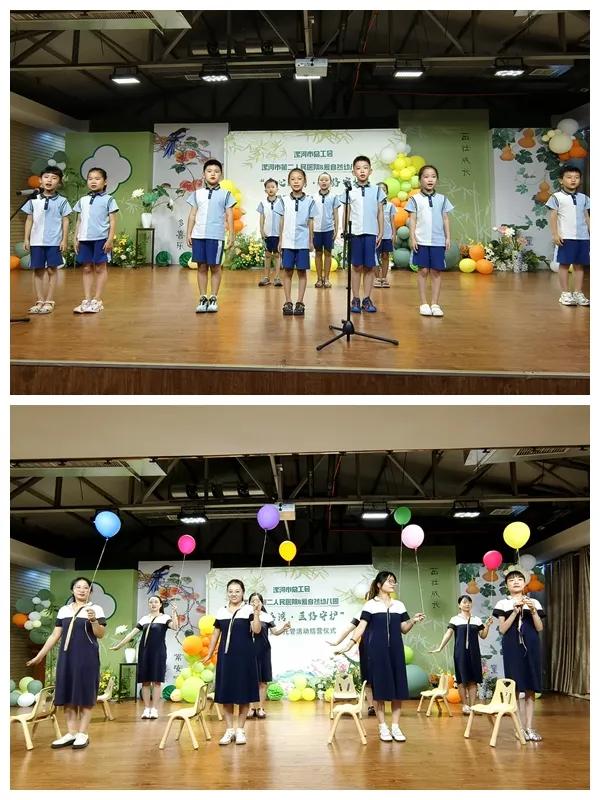現(xiàn)場(chǎng),由老師和孩子們共同表演的才藝展示拉開了結(jié)班儀式的序幕,舞蹈《愛的加減法》、非洲鼓《綠旋風(fēng)》、舞蹈《聽我說》、詩朗誦《白衣下的雙翼》等豐富多彩的節(jié)目,讓家長(zhǎng)看到了這一個(gè)月里孩子們的成長(zhǎng)與開心,贏得了陣陣掌聲。