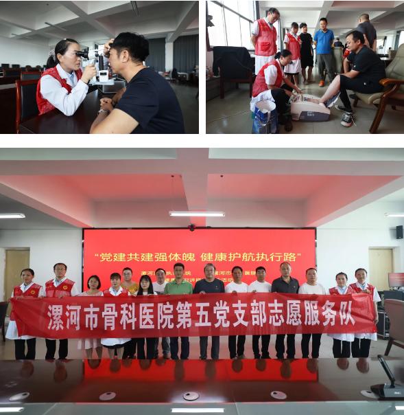 為深化黨建引領(lǐng)作用,增強(qiáng)黨組織凝聚力,同時(shí)關(guān)愛(ài)干警身心健康,8月13日,受漯河市中級(jí)人民法院邀請(qǐng),漯河醫(yī)專二附院(漯河市骨科醫(yī)院、漯河市立醫(yī)院)第五黨支部、漯河市中級(jí)人民法院執(zhí)行局黨支部與源匯區(qū)人民法院執(zhí)行局黨支部聯(lián)合開(kāi)展“黨建共建強(qiáng)體魄 健康護(hù)航執(zhí)行路”主題黨建活動(dòng)。第五黨支部和社會(huì)工作部積極協(xié)調(diào)組織智能骨科、眼科、心理學(xué)醫(yī)療專家及志愿者,為該單位職工帶來(lái)專業(yè)的健康知識(shí)講座與現(xiàn)場(chǎng)診療服務(wù)。