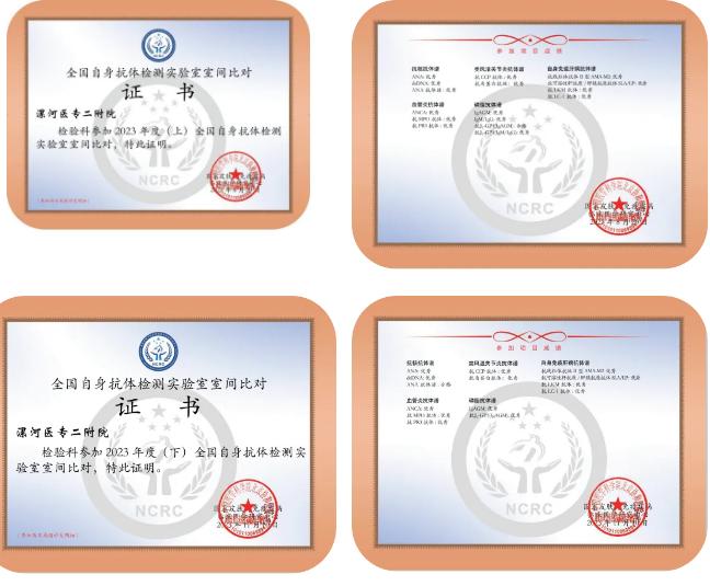 近日,漯河醫(yī)專二附院(漯河市骨科醫(yī)院、漯河市立醫(yī)院)檢驗(yàn)科自身免疫實(shí)驗(yàn)室在“國(guó)家皮膚與免疫疾病臨床醫(yī)學(xué)研究中心(NCRC)”組織的、北京協(xié)和醫(yī)院牽頭的全國(guó)自身抗體檢測(cè)實(shí)驗(yàn)室能力驗(yàn)證中,再次憑借卓越的檢測(cè)能力和穩(wěn)定的技術(shù)水平,斬獲合格證書。這已經(jīng)是自2023年以來,連續(xù)3年獲此殊榮,充分說明了醫(yī)院自身免疫實(shí)驗(yàn)室的檢測(cè)結(jié)果與全國(guó)251家實(shí)驗(yàn)室數(shù)據(jù)高度一致,達(dá)到國(guó)家級(jí)標(biāo)準(zhǔn)化水平,為臨床診斷提供了堅(jiān)實(shí)可靠的依據(jù)。
