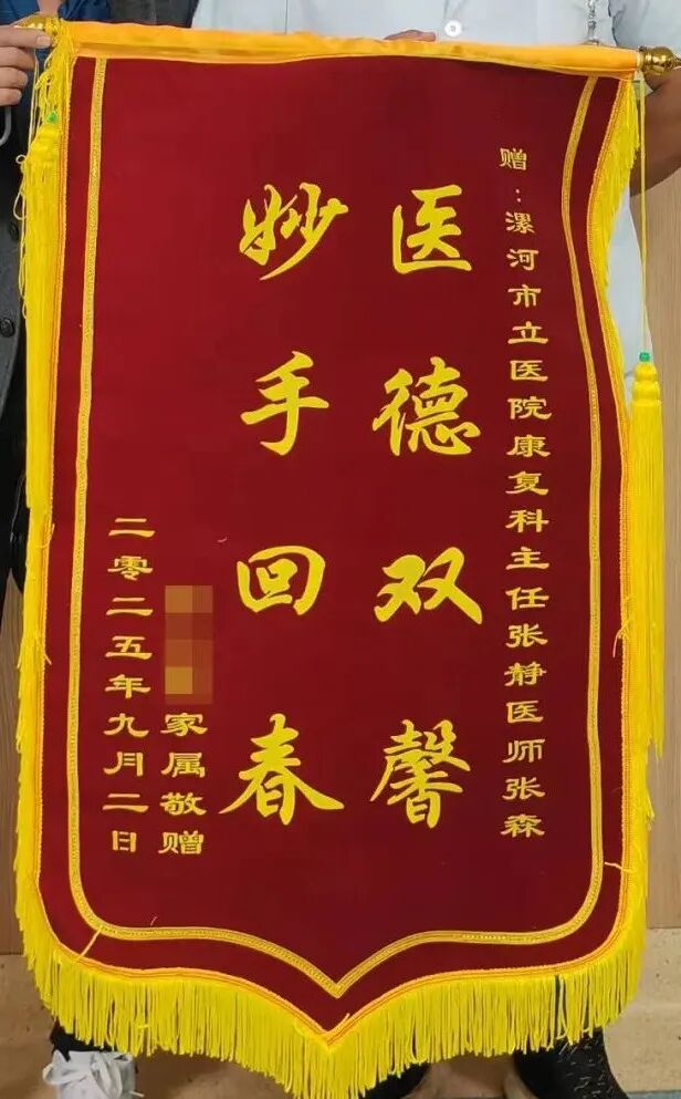 “醫(yī)德雙馨,妙手回春”——這面沉甸甸的錦旗,被患者鄭重地送到了漯河醫(yī)專二附院(漯河市骨科醫(yī)院、漯河市立醫(yī)院)康復(fù)醫(yī)學(xué)科張森醫(yī)生手中 ,這是患者對張醫(yī)生真摯的肯定,更是一段從絕望到重生的康復(fù)之路的見證。 一個半月前,患者因偏癱陷入困境:左側(cè)肢體完全活動不利,神志不清、胡言譫語,溝通障礙,記憶功能受損,生活無法自理。康復(fù)醫(yī)學(xué)科團(tuán)隊(duì)立即制定個性化方案,中西醫(yī)結(jié)合開啟康復(fù)征程。