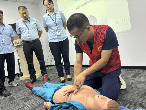 講座結(jié)束后,徐少奇醫(yī)生為大家進(jìn)行現(xiàn)場演示,拆解CPR操作的全部流程,并現(xiàn)場設(shè)置實(shí)操環(huán)節(jié),為大家進(jìn)行指導(dǎo),糾正“按壓位置錯(cuò)誤”“力度不足”等常見錯(cuò)誤,直至掌握正確的急救方法。演練現(xiàn)場氛圍熱烈,職工們都一一輪流進(jìn)行現(xiàn)場實(shí)際操作。
