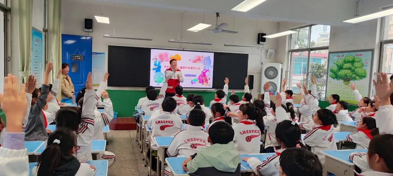 講座結束后,王戰(zhàn)磊又化身為孩子們的“安全知識大考官”,深入班級進行現(xiàn)場演示、講解和現(xiàn)場提問,并為每一位勇敢舉手回答的孩子,都送上了一份小紀念品。“之前聽說有同學被熱水燙到涂抹牙膏,原來這是錯誤的!如果遇到這種情況,我知道該怎么做了!”同學們的自救互救能力得到了有效提升。