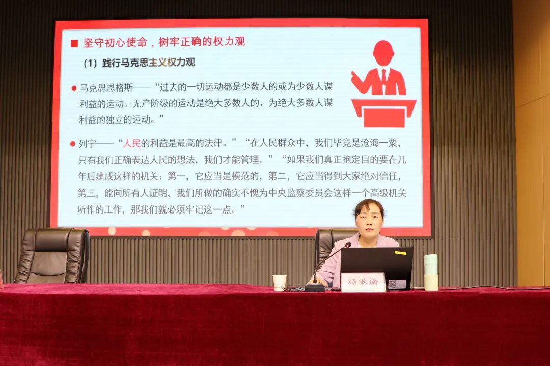 楊琳瑜以《鍥而不舍落實(shí)中央八項(xiàng)規(guī)定精神 牢固樹立正確的權(quán)力觀政績觀事業(yè)觀》為題,從堅(jiān)守初心使命,樹牢正確的權(quán)力觀;堅(jiān)持為民造福,樹牢正確的政績觀;堅(jiān)定實(shí)干擔(dān)當(dāng),樹牢正確的事業(yè)觀三個(gè)方面,為與會(huì)人員帶來了一場既有理論高度又有實(shí)踐指導(dǎo)意義的專題輔導(dǎo)。