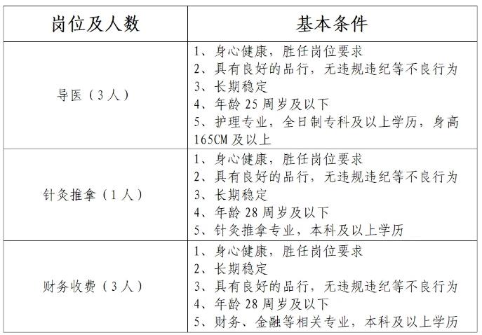 漯河市中醫(yī)院根據(jù)工作需要現(xiàn)委托第三方對導(dǎo)醫(yī)、針灸推拿、財務(wù)收費輔助崗位人員實施勞務(wù)派遣?,F(xiàn)公告如下: