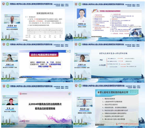 在隨后的學(xué)術(shù)講座中,河南省人民醫(yī)院徐金義、楊麗紅、王慶義、李涵,漯河市中醫(yī)院張茜、陳云、王向濤分別授課,題目為《經(jīng)典心律失常的規(guī)范化診斷與精要解讀》、《心血管特殊人群運(yùn)動(dòng)試驗(yàn)的適應(yīng)證拓展與安全性保障》、《心房波的“放大鏡”--深度解讀食管心電圖》、《肺功能檢查的規(guī)范化臨床應(yīng)用與報(bào)告解讀》、《平板運(yùn)動(dòng)試驗(yàn)的臨床應(yīng)用》、《臨床常見(jiàn)危急值心電圖》、《平板運(yùn)動(dòng)試驗(yàn)的風(fēng)險(xiǎn)及處理》等學(xué)術(shù)講座。會(huì)場(chǎng)氣氛熱烈,學(xué)術(shù)氛圍濃厚。