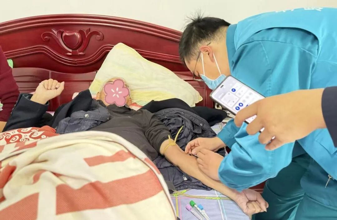 76歲的老人在外地接受膽管癌手術(shù)后返家休養(yǎng),身上仍攜帶兩根術(shù)區(qū)引流管。11月12日早上,家屬突然發(fā)現(xiàn)引流液呈血性,并緊急與主管醫(yī)生溝通后,醫(yī)生建議立即進(jìn)行血常規(guī)和凝血功能檢測(cè),明確病情變化。可該患者剛做完手術(shù),身體虛弱,行動(dòng)不便,往返醫(yī)院的路程對(duì)他來說無疑是一種煎熬,焦急的家屬只好匆匆趕往漯河醫(yī)專二附院求助。急診科醫(yī)護(hù)人員幫助家屬通過“豫健護(hù)理到家”平臺(tái)完成下單操作,經(jīng)驗(yàn)豐富的陳笑寒護(hù)士長(zhǎng)與護(hù)士李鵬舉第一時(shí)間攜帶專業(yè)采血設(shè)備和護(hù)理包,火速趕往患者家中,緩解了患者與家屬的燃眉之急。(盧 闖 劉 旭 袁錦鈺)