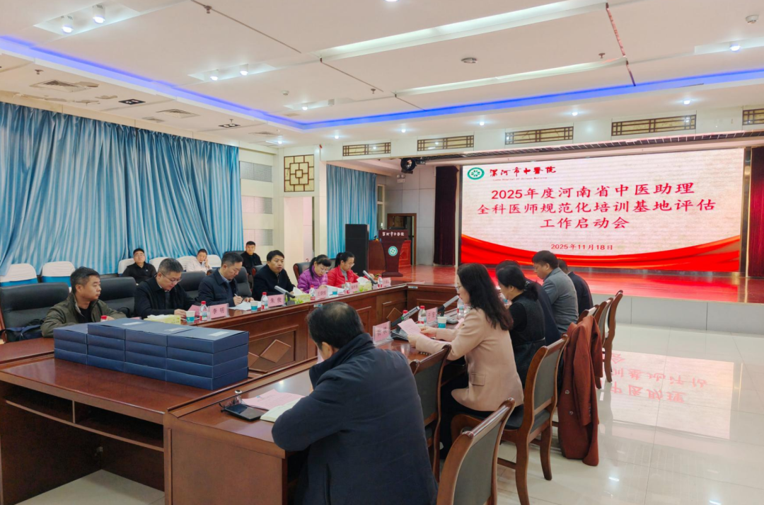 11月18日,根據(jù)河南省衛(wèi)生健康委統(tǒng)一部署,由河南省中醫(yī)住院醫(yī)師規(guī)范化培訓(xùn)基地評估專家組一行六人蒞臨漯河市中醫(yī)院,對醫(yī)院2025年度中醫(yī)助理全科醫(yī)師規(guī)范化培訓(xùn)基地建設(shè)工作進行現(xiàn)場評估與指導(dǎo)。漯河市衛(wèi)健委副主任于宏,市中醫(yī)院黨委書記、院長楊軼,黨委副書記張文吉,副院長劉家棟、閆丙川,紀委書記高奎,科教科長常新勇、規(guī)培專職管理人員王紅紅及相關(guān)行政職能科室負責(zé)人、各培訓(xùn)科室教學(xué)主任與秘書共同參加了評估會。啟動會由院黨委副書記張文吉主持。