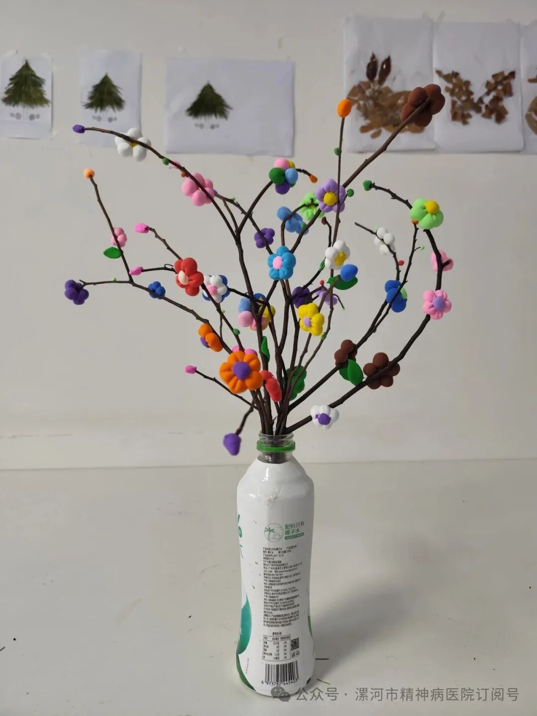 枯樹枝本來干干的,裹上彩色粘土后,突然就“活”了起來——插在洗干凈的飲料瓶里,像一束永遠(yuǎn)不會(huì)謝的春天。