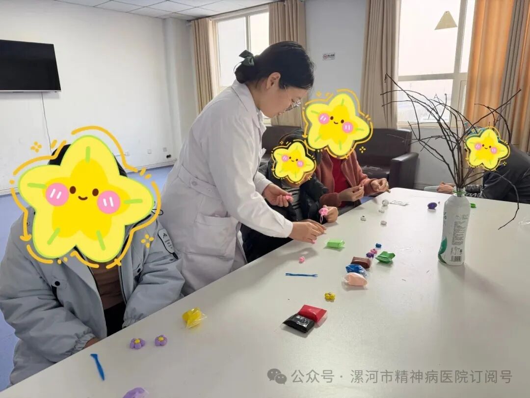 12月1日,漯河市精神病醫(yī)院心身醫(yī)學(xué)科的活動(dòng)室,有點(diǎn)不一樣,沒有復(fù)雜的工具,只有幾包彩色粘土、撿來的枯樹枝,還有一群帶著期待的患者。醫(yī)護(hù)人員要做的,是把“春天”捏進(jìn)枯枝里,裝在喝完的飲料瓶里~