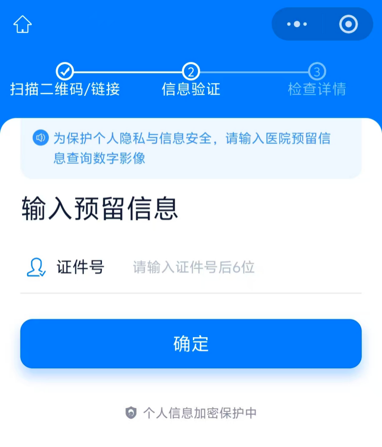02 輸入患者身份證后六位進(jìn)行身份驗(yàn)證。