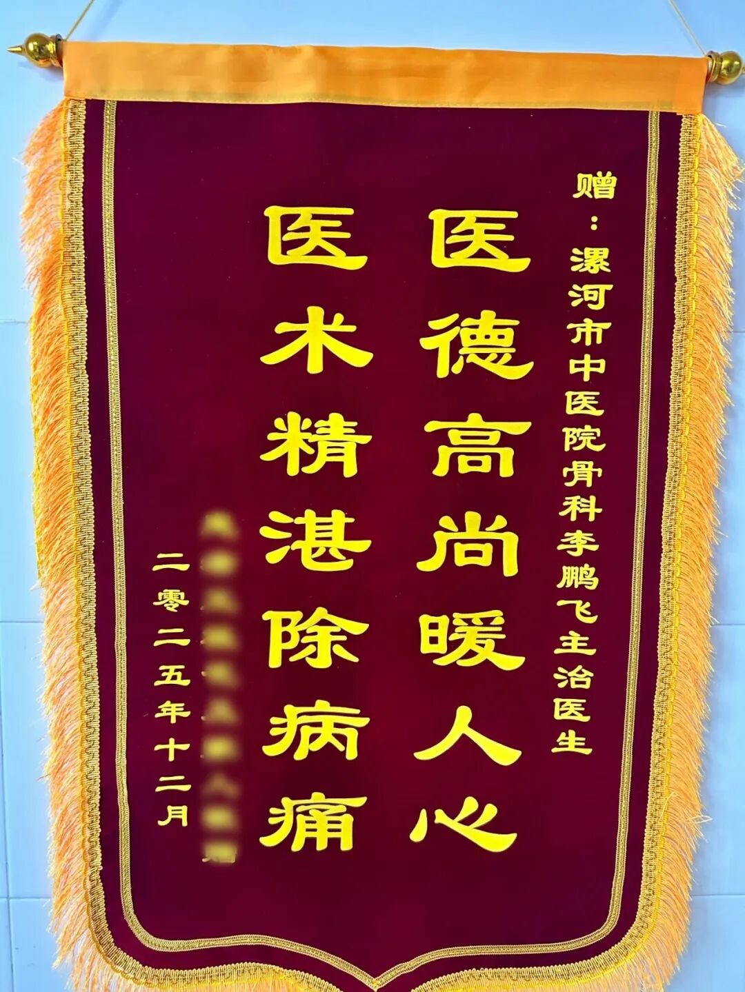 近日,我院骨科收獲了一份滿含真摯謝意的禮物 ——90 歲患者王奶奶(化名)的家屬,將一面印著 “醫(yī)德高尚暖人心,醫(yī)術(shù)精湛除病痛” 的錦旗送到科室,以此感謝骨科醫(yī)護(hù)團(tuán)隊(duì)助老人擺脫病痛、重新站立行走。