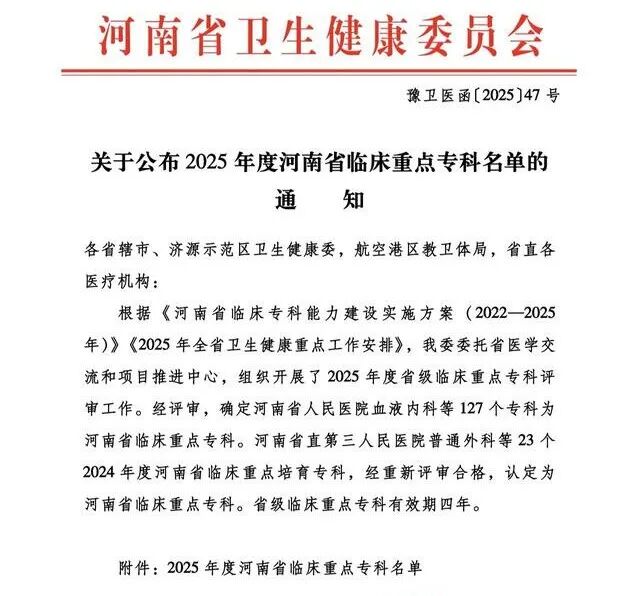近日,河南省衛(wèi)生健康委發(fā)布《關(guān)于公布2025年度河南省臨床重點名單的通知》(豫衛(wèi)醫(yī)函〔2025〕47號),漯河醫(yī)專二附院(漯河市骨科醫(yī)院、漯河市立醫(yī)院)運動醫(yī)學(xué)科與護理??瞥晒νㄟ^評審被確定為河南省臨床重點專科。漯河醫(yī)專二附院再添兩個省級臨床重點???,標志著這兩大專科在醫(yī)療技術(shù)、科研創(chuàng)新、服務(wù)質(zhì)量及區(qū)域影響力等方面達到省內(nèi)領(lǐng)先水平。