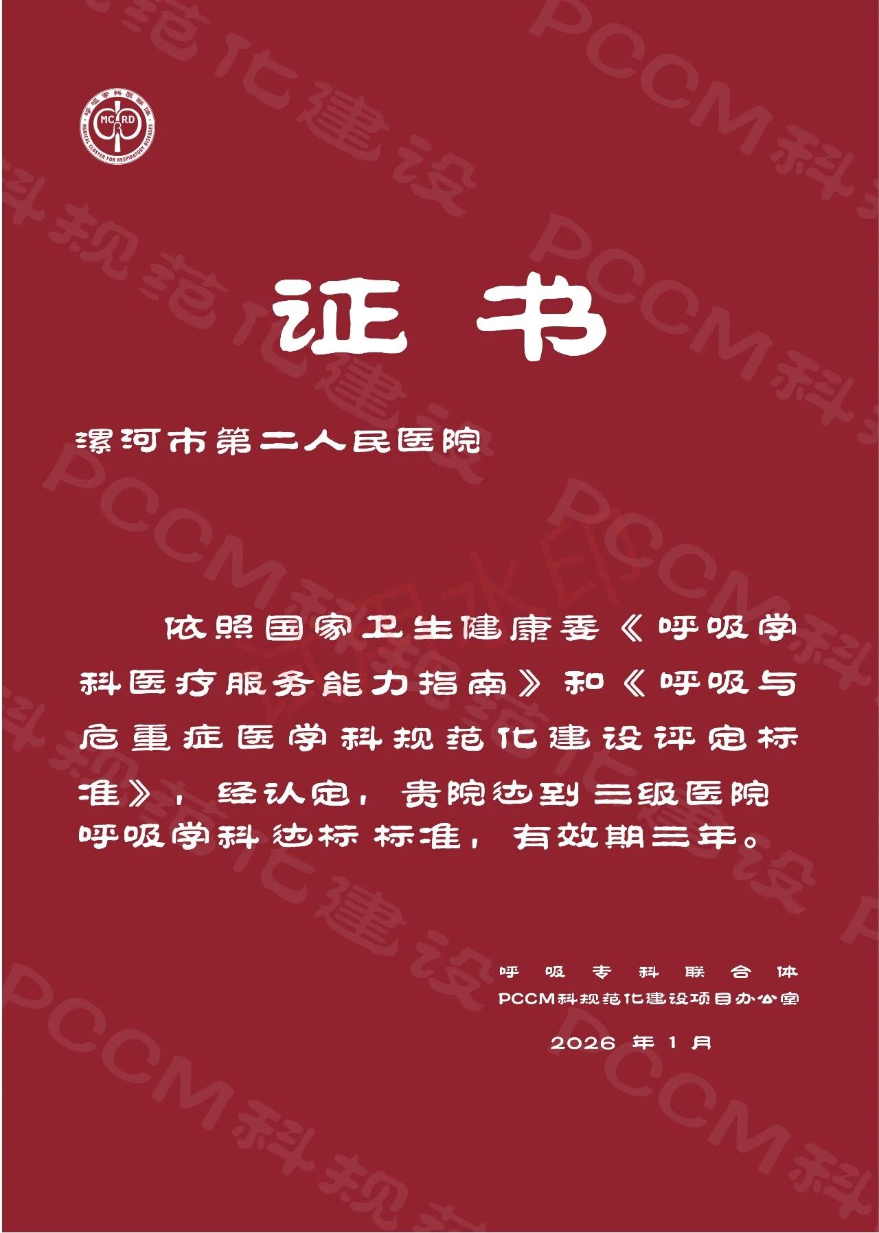 漯河市二院呼吸與危重癥醫(yī)學(xué)科順利通過國(guó)家三級(jí)醫(yī)院PCCM認(rèn)證