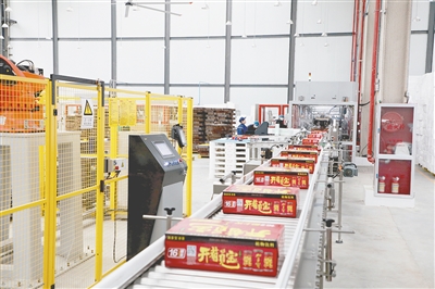 在不遠(yuǎn)處的河南鹽津鋪?zhàn)邮称酚邢薰旧a(chǎn)基地,一條條全自動(dòng)生產(chǎn)線上,全新包裝的薯片、鵪鶉蛋正源源不斷地快速輸送。廠房隔壁,公司二期項(xiàng)目正在火熱施工。“我們現(xiàn)在是一邊滿產(chǎn)運(yùn)行,一邊加快二期北方區(qū)域物流中心和肉脯生產(chǎn)線項(xiàng)目建設(shè)。”該公司行政負(fù)責(zé)人薛明指著公司項(xiàng)目規(guī)劃圖介紹,按照公司“一基地兩中心”發(fā)展規(guī)劃,明年將啟動(dòng)三期建設(shè)。