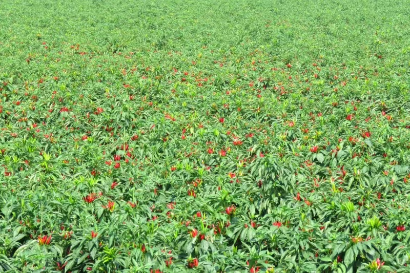 你看看:榮莉萊的辣椒直播大田表現(xiàn)非常的好,縱橫成行,合理密植,通風(fēng)透光,光合作用強(qiáng),增產(chǎn)效果明顯,利國(guó)利民,一般畝增產(chǎn)都在300斤以上,每畝純收入5000多元,值得在省內(nèi)外推廣。榮莉萊的這種小麥套種辣椒的種植模式適用于在河南、安徽、山東、河北、天津、陜西、山西、新疆等中北部地區(qū)大面積機(jī)械化推廣種植。目前,已經(jīng)在省內(nèi)外推廣這種種植模式在10萬(wàn)畝以上。同時(shí),這種麥椒套種畝產(chǎn)小麥在1000斤以上,既保證了糧食安全,又增加了經(jīng)濟(jì)收入,是今后大面積推廣種植的方向。