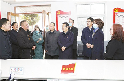?。ㄓ浾?孫永輝)12月9日,市委書記蒿慧杰帶領(lǐng)相關(guān)部門負(fù)責(zé)同志調(diào)研基層治理工作,強(qiáng)調(diào)要堅(jiān)持以習(xí)近平新時(shí)代中國(guó)特色社會(huì)主義思想為指導(dǎo),深入貫徹黨的十九屆四中、五中全會(huì)精神,健全基層組織體系、建強(qiáng)基層治理隊(duì)伍、持續(xù)賦權(quán)擴(kuò)能減負(fù)、建好管理服務(wù)平臺(tái),扎實(shí)推進(jìn)黨建引領(lǐng)基層治理高質(zhì)量,持續(xù)提升基層治理體系和治理能力現(xiàn)代化水平。市領(lǐng)導(dǎo)李建濤、呂娜、周新民陪同調(diào)研。
