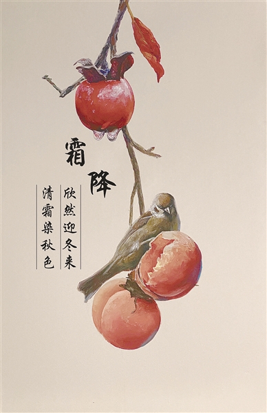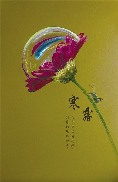 “每半個(gè)月就有一個(gè)節(jié)氣,要在一年內(nèi)完成二十四個(gè)節(jié)氣,時(shí)間確實(shí)比較緊張。”梁超進(jìn)說,目前他已完成二十二幅作品,小滿和大寒正在創(chuàng)作。他打算以石榴花為主題創(chuàng)作小滿節(jié)氣,以企鵝為主題描繪大寒節(jié)氣。