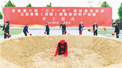 5月8日,市委書記秦保強(qiáng)等為臨潁縣江蘇榮煜(河南)銅基新材料產(chǎn)業(yè)園項(xiàng)目培土奠基。