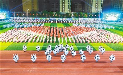開幕式現(xiàn)場,裁判員、運動員代表進行了宣誓。來自市實驗小學(xué)、召陵中學(xué)、許慎小學(xué)等7所學(xué)校的7000余名師生,進行了武術(shù)、韻律操等精彩的團體操表演。
