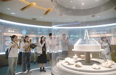 采訪團成員在賈湖遺址博物館參觀。記者 李宜書 攝