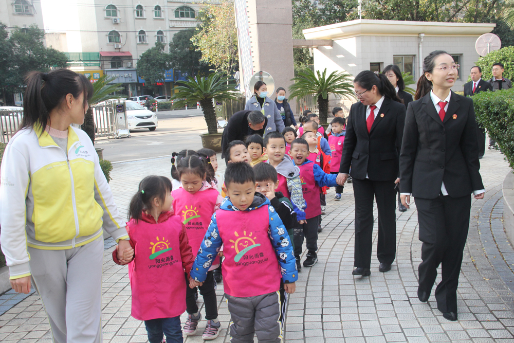 11月19日上午,陽光雨露鴿子樹班21個小朋友在老師的帶領(lǐng)下,走進了漯河市中級人民法院,零距離認識了法官、了解了法院,在幼小的心靈種下了“法”的種子。