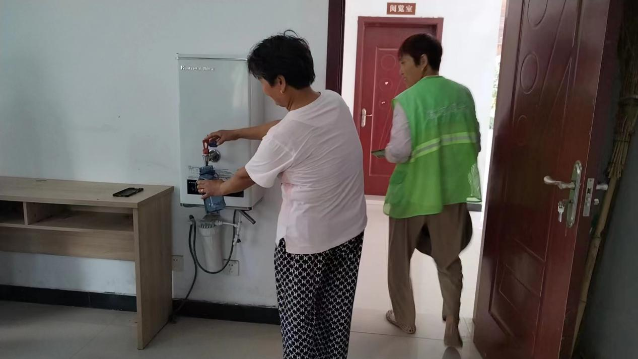“環(huán)衛(wèi)愛(ài)心驛站”志愿者給市民和環(huán)衛(wèi)職工取水暫休