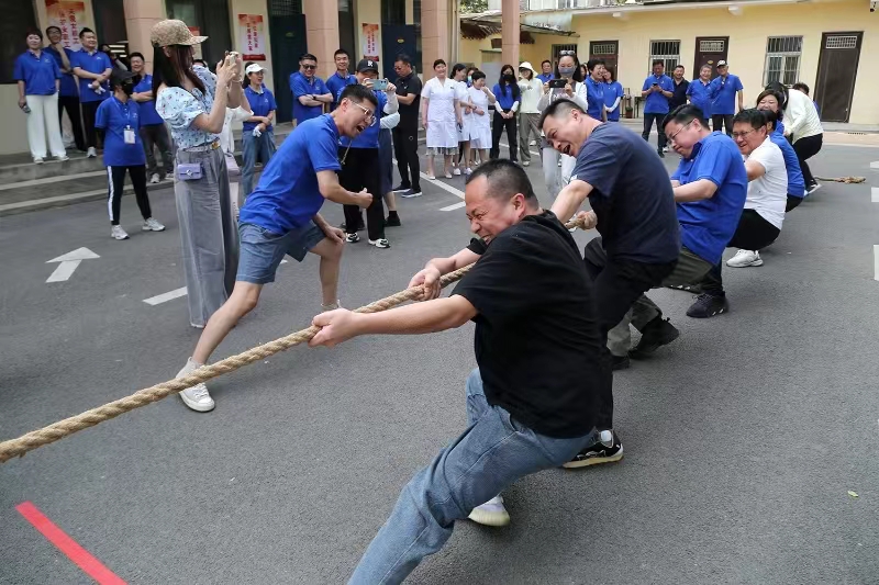 本次趣味運動會旨在通過輕松愉快的體育活動,增強職工之間團隊協(xié)作能力、減輕工作壓力,促進身心健康,享受運動帶來的快樂。運動會設置了雙龍戲珠、成語接龍、拔河比賽等項目。各個競賽項目的設置,既 有力量的角逐,又有技巧的較量;既有趣味娛樂氛圍,又有團隊比拼競爭,參賽者們齊心協(xié)力、奮勇爭先,展現(xiàn)出了蓬勃向上的精神風貌。拔河作為運動會的傳統(tǒng)項目,隨著裁判的第一聲哨響,將整個運動會氣氛推向了高潮。運動員們咬緊牙關、皺緊眉頭,斗志昂揚,場邊拉拉隊為各自隊員加油打氣,掌聲和歡呼聲此起彼伏,現(xiàn)場氣氛熱烈。參賽者們在運動中感受快樂,在快樂中提升自我,紛紛表示,此次運動會不僅是一次身體的鍛煉,更是一次加深同事朋友友誼的機會,為未來的工作和生活注入源源不斷的動力。