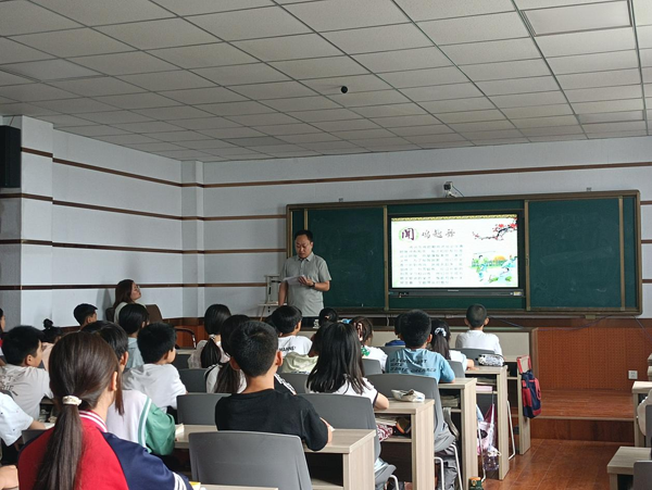課堂上,高明同志用視頻導(dǎo)入,結(jié)合世界局勢(shì)引出思政課主題,珍惜和平,傳承中華美德,提高同學(xué)們對(duì)傳統(tǒng)文化的濃厚興趣,學(xué)習(xí)時(shí)代楷模,發(fā)揚(yáng)榜樣力量,帶同學(xué)們深入感受中華傳統(tǒng)美德,立志做美德少年。課堂最后,高鎮(zhèn)長(zhǎng)對(duì)同學(xué)們進(jìn)行安全教育,叮囑大家暑期安全注意事項(xiàng)。