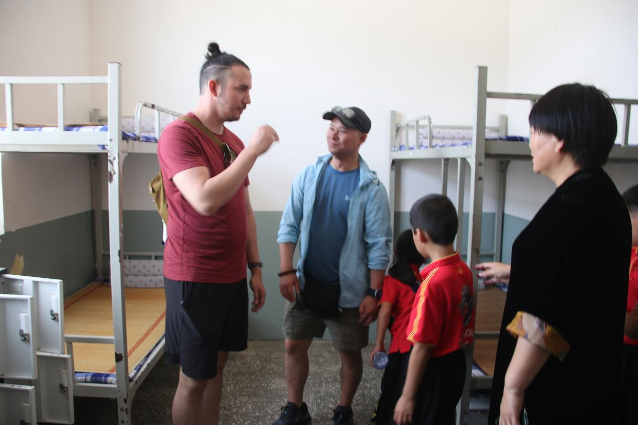美國伊州少林功夫院的學員們一行22人,在臨潁縣慧輝文武學校校長魯曉輝的陪同下,先后參觀了文武學校的教室、寢室、餐廳、活動室、練功房等。