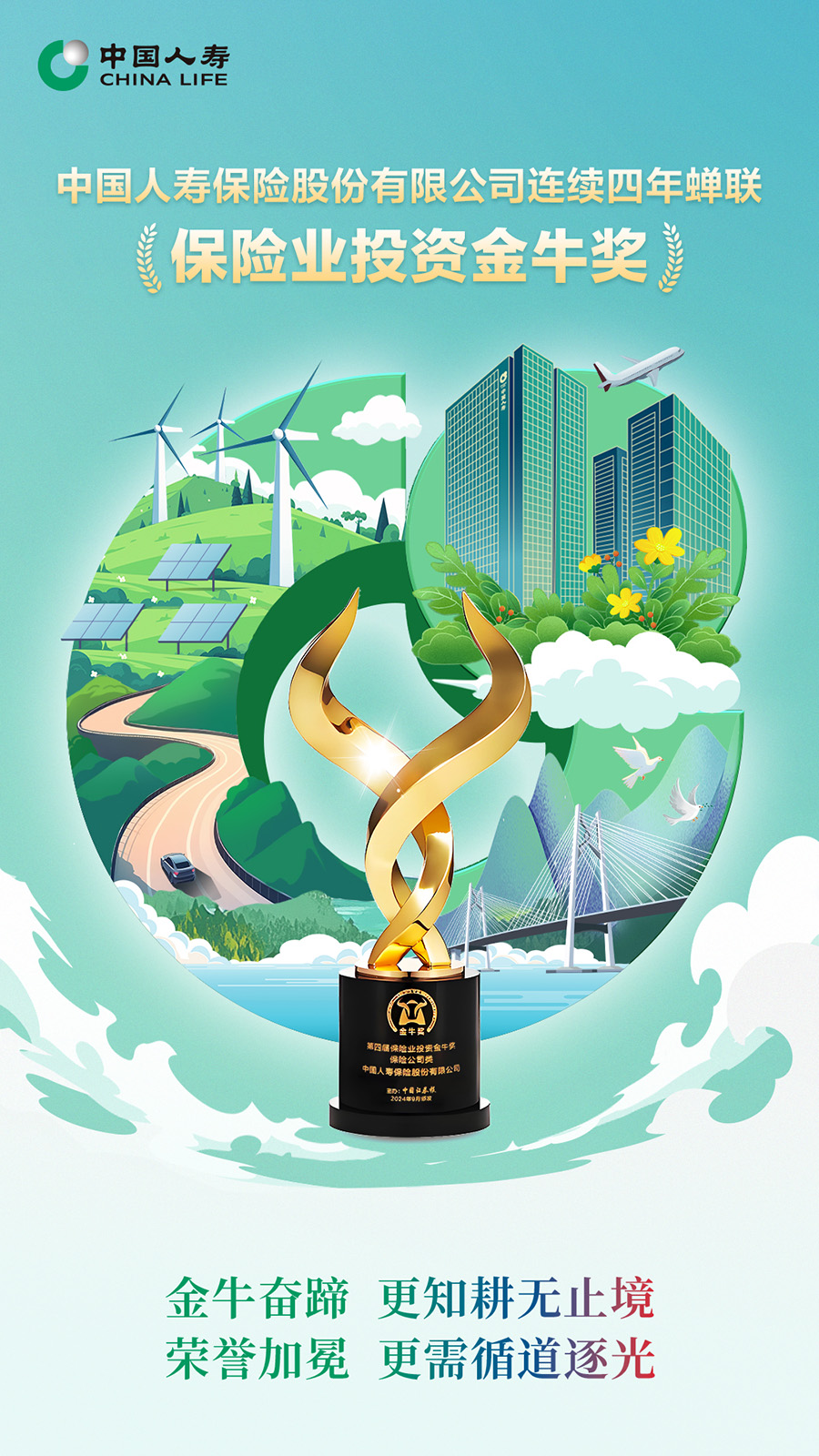 金牛奮蹄,更知耕無止境。未來,中國人壽壽險(xiǎn)公司將繼續(xù)錨定建設(shè)世界一流壽險(xiǎn)公司目標(biāo),深入貫徹黨的二十屆三中全會(huì)精神,堅(jiān)守自身功能定位,奮力做好金融“五篇大文章”,全面加大改革攻堅(jiān)力度,譜寫高質(zhì)量發(fā)展嶄新篇章,努力為推進(jìn)中國式現(xiàn)代化作出更大貢獻(xiàn)。