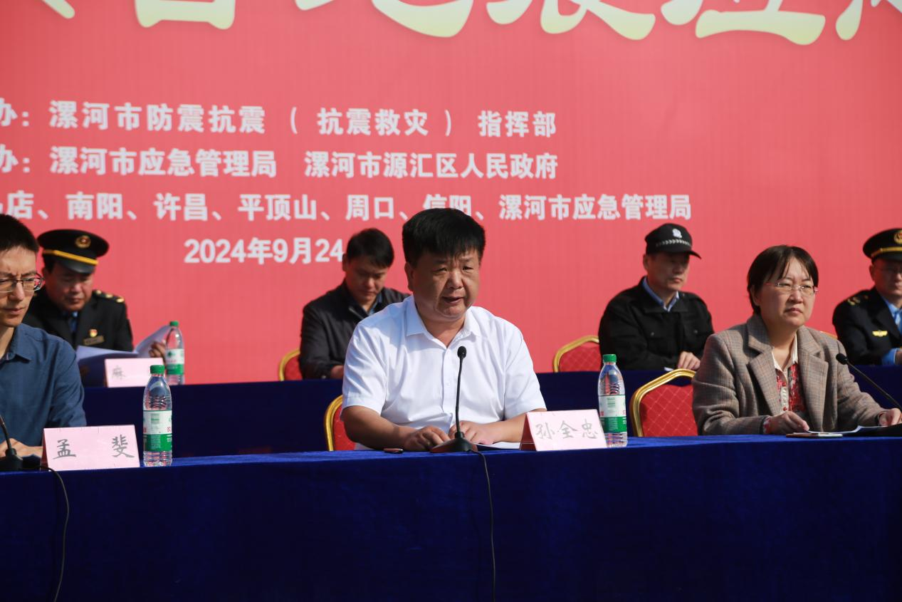 9月24日,豫南地震快速應(yīng)急聯(lián)隊(duì)2024年度聯(lián)合地震應(yīng)急演練在漯河市源匯區(qū)舉行。此次演練由漯河市防震抗震(抗震救災(zāi))指揮部主辦,漯河市應(yīng)急管理局、源匯區(qū)人民政府承辦。平頂山市、許昌市、漯河市、南陽市、周口市、駐馬店市、信陽市應(yīng)急管理局一同參加演練。河南省地震局黨組成員、副局長郝敏,漯河市政府副秘書長王振甫,漯河市應(yīng)急管理局黨委書記、局長孫全忠, 源匯區(qū)委副書記、區(qū)政府區(qū)長史一鳴等出席活動(dòng)。